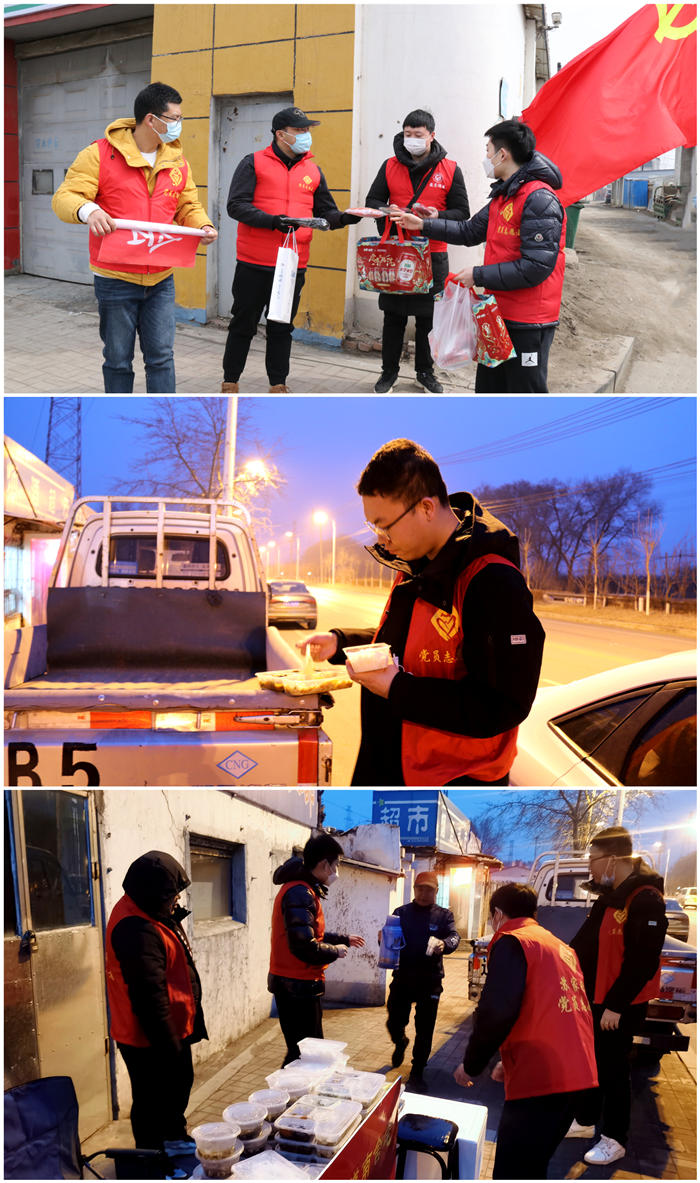 民主街道的工作人員為志愿者們及時送餐,保證大家吃上一口熱乎飯;工業(yè)公司黨支部為志愿者們準(zhǔn)備了手套、暖寶寶、口罩等物品,滿足大家御寒需要。
